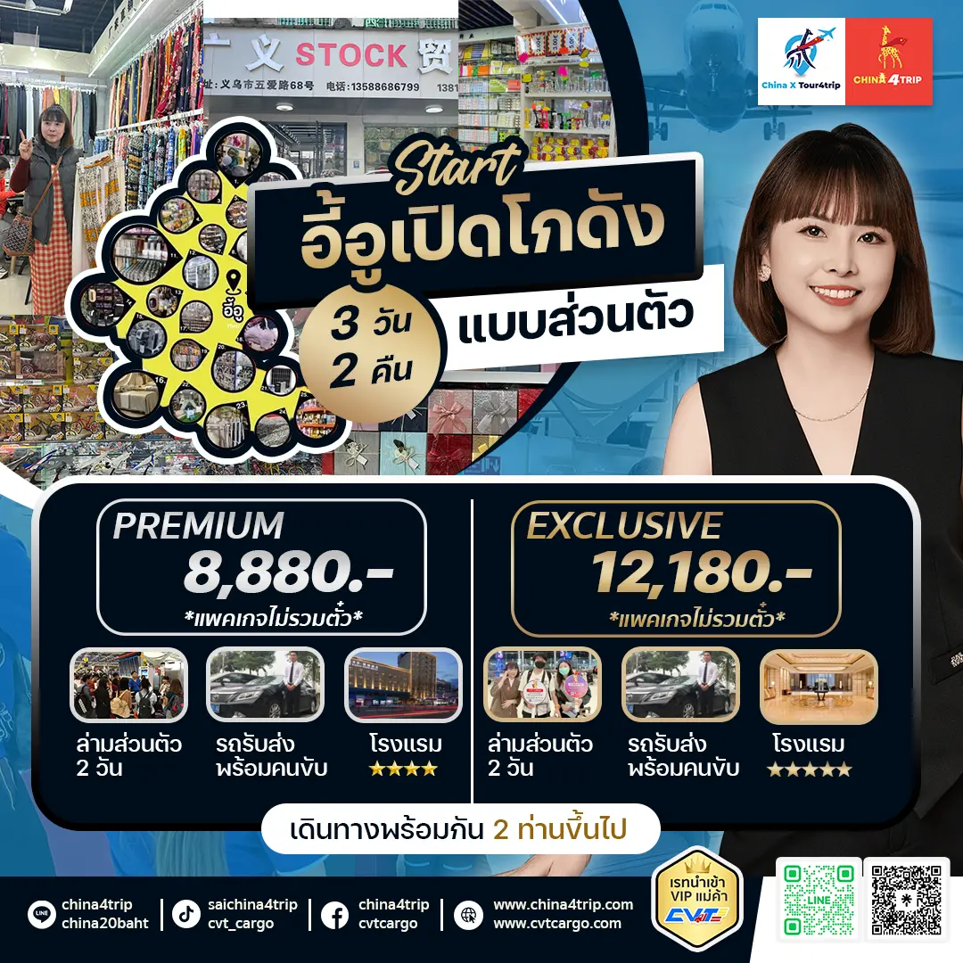 - 80% ลูกค้าที่เลือกบินกับเรา ช่วยธุรกิจท่านต่อยอด-ขยายใหญ่ขึ้นและ Shortcut ทางลัดดีลตรง สามารถสั่งสินค้าได้มากกว่าบินไปเอง (เลือกเจาะลึกเกรดราคาถูกสุด-เกรดส่งออกไปขายทั่วโลก)