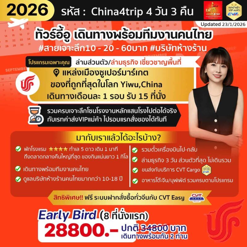 China4trip จะทำให้การนำเข้าสินค้าจากจีนของท่านเป็นเรื่องง่าย ในทุกบริการนำเข้าเพื่อผลประโยชน์สูงสุดของท่าน กรุณาแจ้งความต้องการโดยตรง สำหรับความต้องการเอกสารนำเข้ากับทาง CVT CARGO ทุกครั้งของการนำเข้า เพื่อท่านจะได้จัดเตรียมเอกสารให้ครบถ้วนก่อนการนำเข้าจริง ทางบริษัทยินดีให้คำแนะนำทุกท่านอย่างเต็มที่